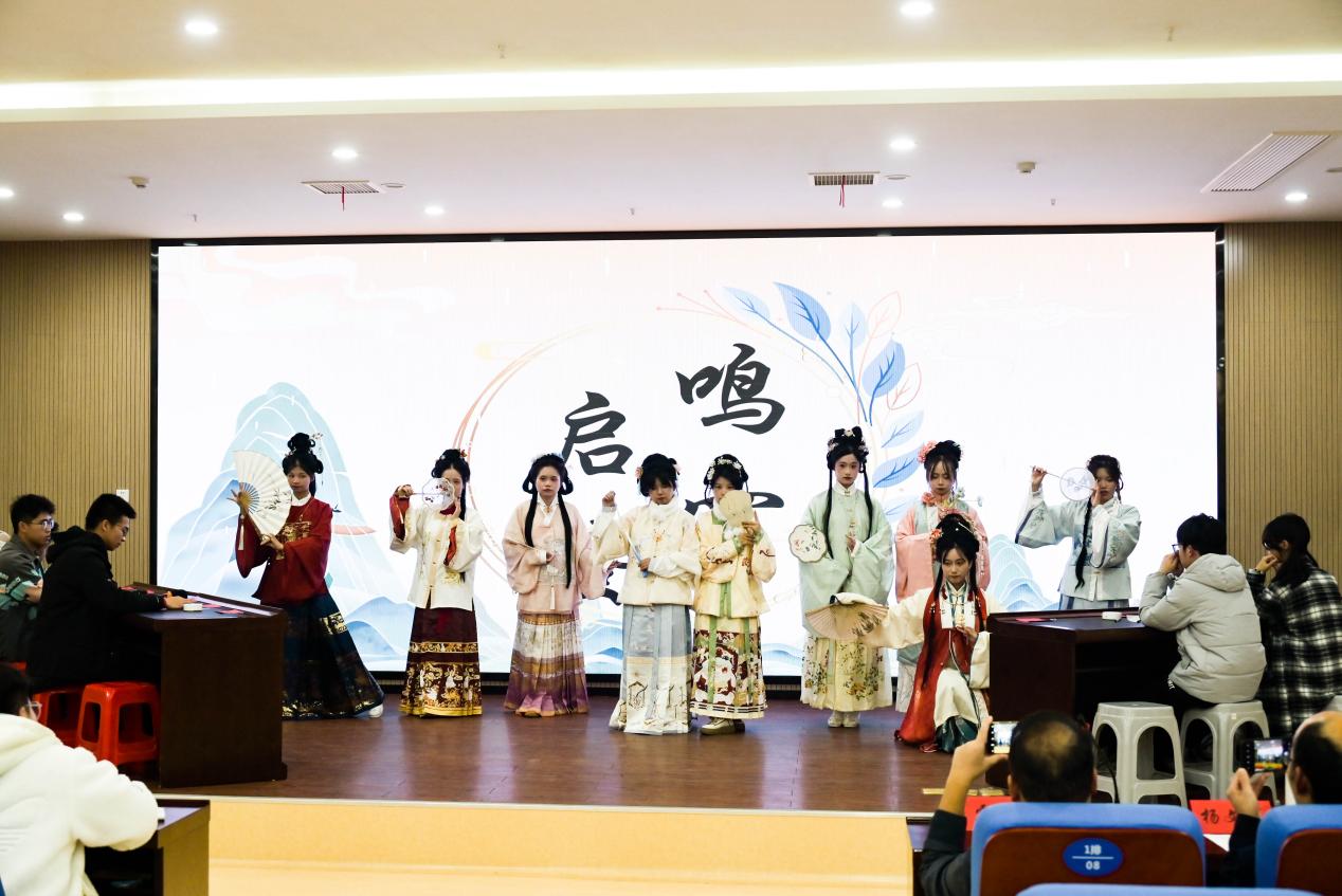 本次国学知识大赛以“承千秋耒耜,传万代钟铎”为主题,分为智在必答、分秒必争、险中求胜三个环节,比赛题目涵盖了中国古代历史、哲学、书画、音乐以及易学等内容,设置了必答题、抢答题、线索推断题、论述题、互动题等多种题目形式,并结合古琴表演、汉服走秀等精彩节目,集知识性、趣味性、互动性于一体。各选手对答精妙,展现了深厚的国学知识功底与良好的文化素养,赢得了在场观众热烈的掌声。比赛过程中,各评委老师进行精彩点评,对题目进行了深入浅出的细致讲解,对选手答题内容予以肯定与纠正,加深了全体成员对相关知识的了解。经过激烈角逐,来自计信院大数据 202202 的余煌磊同学最终夺得了本次比赛的冠军,公司汉语言文学 202202 班许文娜、谢秀兰同学获得优胜奖。