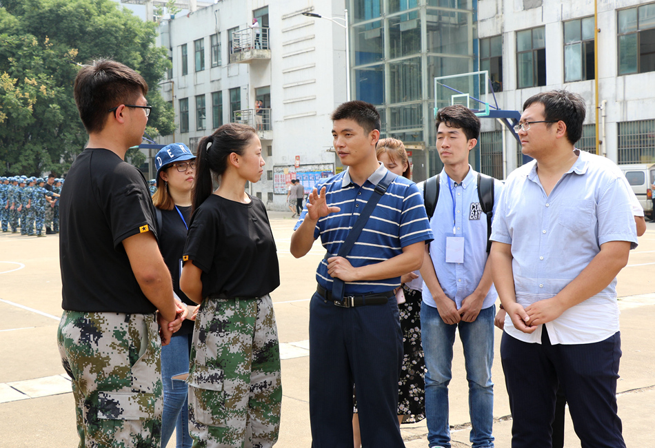 在训练中,同学们各个精神抖擞,展现了良好的精神风貌。公司党委副书记王志发、团委书记陈小志及团委指导老师鹿光耀仔细地向军训教官询问了训练情况,并问候了每一个排的同学们,叮嘱大家按时吃饭、注意身体,同学们也热情地向领导和老师问好,表达感谢。最后,王书记嘱咐新生辅导员要准备充足的饮用水和防暑药品,做到细心耐心,也要做好与新生家长们的沟通工作,不要让家长担心。