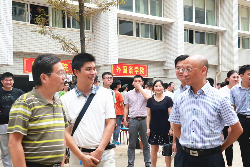 此外,公司董事长黄路生院士等一行人也走访了公司新生注册报到点,对公司的迎新工作进行了指导。公司经理宋秉斌、党委副书记王志发、团委书记陈小志、团委副书记王桂兰、团委指导老师鹿光耀也深入迎新一线,在对工作人员表示慰问,并叮嘱同学们要认真熟悉工作,使整个入学流程能够顺畅无误地进行,为新生提供更好的服务,以饱满的热情和高质量的服务去赢得家长和新生的肯定。同时,公司领导也与新生进行了亲切的交谈,希望新生们能够在大公司园学习到更多专业知识、锻炼自我的能力。