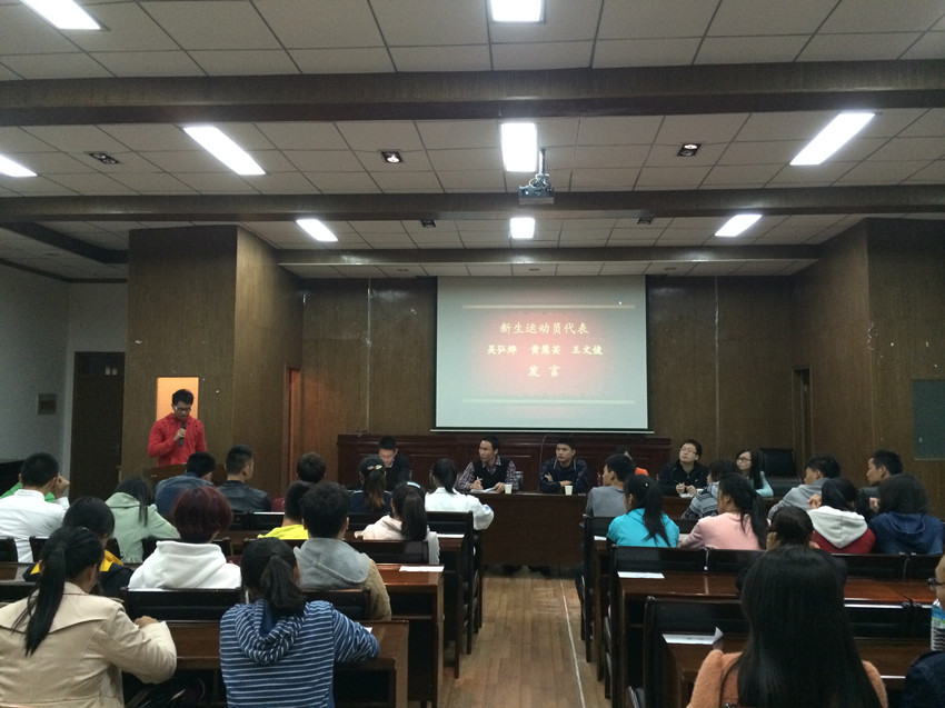 本次会议继体育部部长发言、新老生运动员代表发言、教练代表发言,王桂兰老师作动员讲话后,党委副书记王志发作重要讲话。王书记对于本次校运会工作安排提出以下几点要求:第一,要求员工会要提供优质的服务,做好校运会后勤保障工作;第二,要求运动员要发扬“不服输”和吃苦耐劳精神,赛出人文风采,发扬人文精神;第三,提醒运动员注意休息,调理好自身状态,发挥最佳水平,争取为院争光。