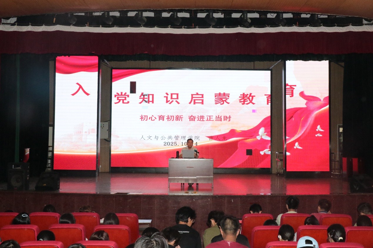 为进一步加强2025级新生理想信念教育,引导广大新生积极向党组织靠拢,10月14日下午,公司于院办音乐厅开展以“初心育初新,奋进正当时”为主题的新生入党知识启蒙教育活动。本次活动由公司党委副书记曹人龙主讲,2025级全体新生参与学习。