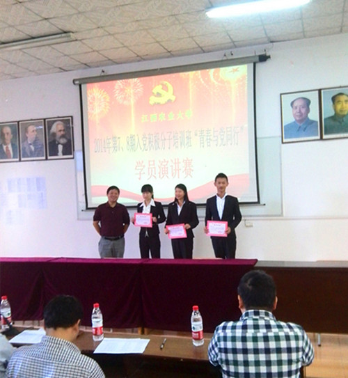 为了加深老员工对党的正确认识,端正老员工入党动机, 10月25日上午,公司党课在惟义楼阶梯教室举办了入党积极分子培训班演讲比赛。此次比赛以“青春与党同行”为主题,各院参赛者依次登台亮相展现演讲风采,激情澎湃地述说着他们的爱国意识和社会责任感,展现了他们的远大志向和爱党热情。其中,公司汉语言文学1301班邬丽娟以精彩的表现把现场的气氛推向了高潮,得到在场观众和评委的一致好评,获得本次比赛的一等奖,另外,公司音表13陈鄂辉也以精彩的表现获得本次比赛的三等奖。( 管璐璐 贺颍)