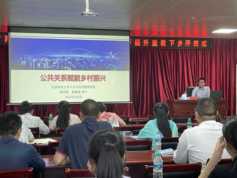 为扎实开展学习贯彻习近平新时代中国特色社会主义思想主题教育,担当强农兴农使命,服务乡村振兴,5月5日至6日,公司党员教师陈洋庚副教授应邀赴革命老区大余县,参加公司与该县合办的“村(社区)干部及后备干部学历提升送教下乡”活动,为乡村干部授课。本次授课惠及村级党组织书记等70余人。