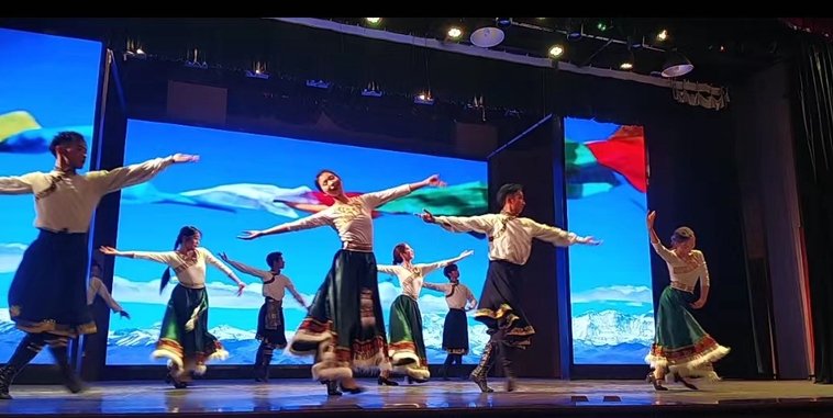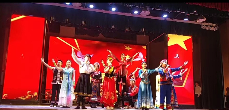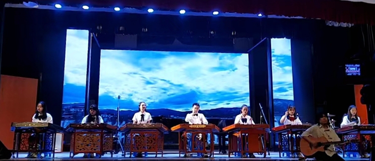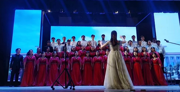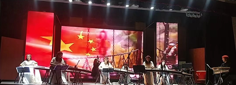 为期一周的展演活动分舞蹈、声乐、器乐三个板块,各专业教师依托音乐学学科资源,深入挖掘音乐教学的思政元素,推出了一个个的精彩节目。杨娟、周婧、吴定博三位器乐老师联袂登台,一曲《东方红》,形象演绎了党的初心使命。表演唱《唱支山歌给党听》以昂扬的歌声抒发“感党恩、听党话、跟党走”的炽热情怀。小组唱《强国一代有我在》,唱出了当代青年作为强国一代的责任担当。舞蹈《维吾尔族姑娘》优美挺拔,藏族舞蹈《格桑花开》热情奔放,古筝和管乐合奏《我的祖国》激情澎湃,表达了浓烈的爱国主义情感。