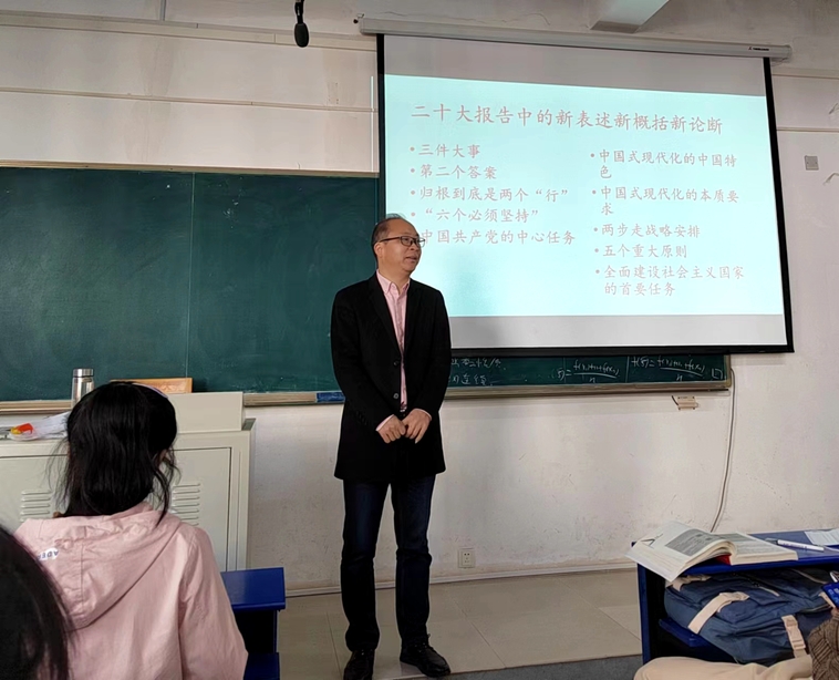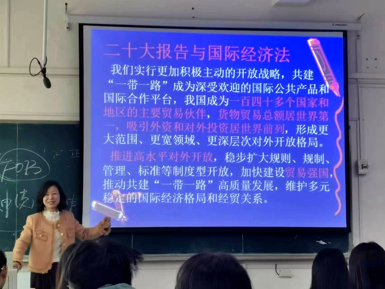 “我们要坚持高水平对外开放,加快构建以国内大循环为主体、国内国际双循环相互促进的新发展格局,主动对标高标准国际经贸规则,以高水平开放促进深层次改革、推动高质量发展。”校优秀共产党员、管理法学教工支部副书记何爱华讲师主讲《国际经济法》,她结合党的二十大精神,向同学们娓娓道来。