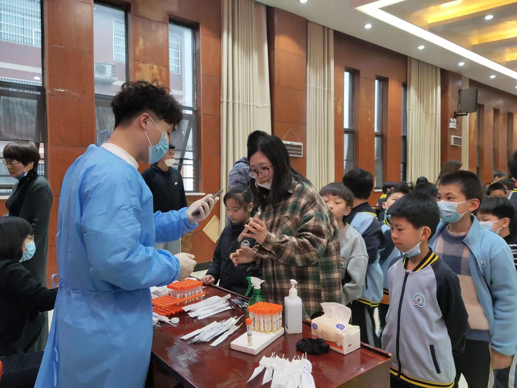 员工党员杨凯进入小公司园为孩子们进行核酸扫码登记。他回忆起志愿服务的经历,感受颇丰。“在服务过程中,我们会碰到对核酸很陌生而感到非常害怕的孩子,我会安抚他们的情绪,尽量用他们能明白的方式解释核酸不会产生过分的疼痛,”他如是谈到,“对于一些年龄较大的叔叔和阿姨他们在维持秩序方面有困难,因此我需要维持好这里的秩序,让孩子们排好队,一个一个来。”和他搭档的那一位医护人员。在这一所小学做完工作之后需要立马转移到另一个地方去,连休息吃饭的时间都没有,对此他肃然起敬,说到:“真正辛苦的还是医护人员,我只是做了自己力所能及的事情罢了。”