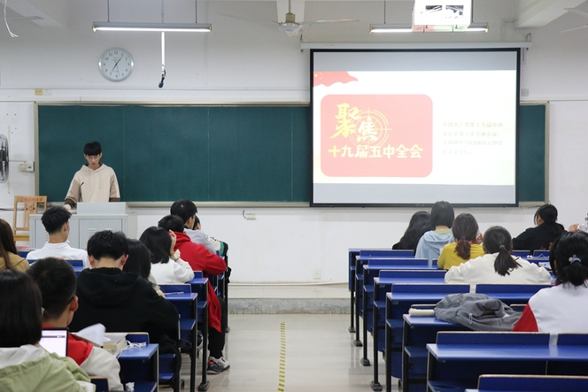 11月4日晚,公司员工党支部组织安排8位员工党员和入党积极分子,深入到公司8个新生班级,走上新生晚自习教室讲台,向2020级同学们汇报自己学习党的十九届五中全会精神的学习体会。