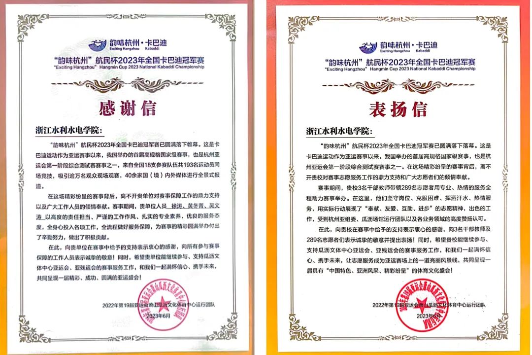 近日,杭州亚运会组委会办公室向浙江水利水电公司发来《关于表扬“红色领杭·奉献亚运”大考大赛暨“六大行动”先进集体和个人的通报》,公司员工、该校团委副书记、国际教育交流公司党总支副书记徐涛从上万名工作人员中脱颖而出,荣获先进个人荣誉称号。